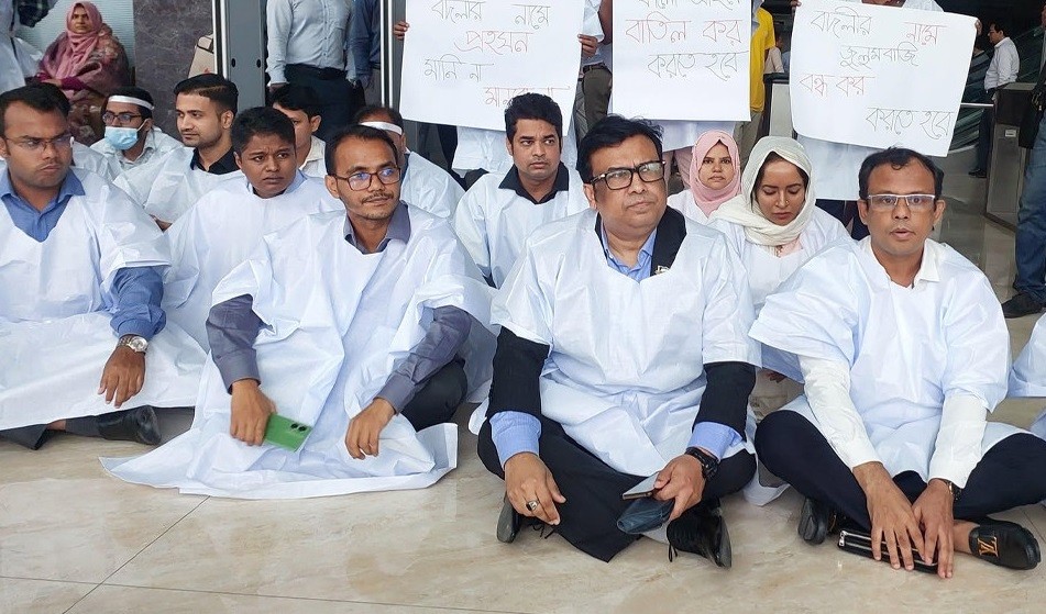 কাফনের কাপড় পরে ফের কলম বিরতিতে এনবিআর কর্মকর্তা-কর্মচারীরা
